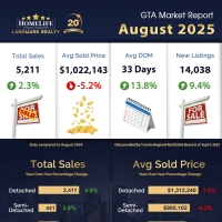 In August 2025, home sales in the Greater Toronto Area saw a modest increase compared to the same time last year, with 5,211 homes sold—a 2.3% rise. However, the number of new listings grew at a much faster rate, up 9.4% to 14,038. This increase in available homes has given home buyers more options and led to a decrease in prices.